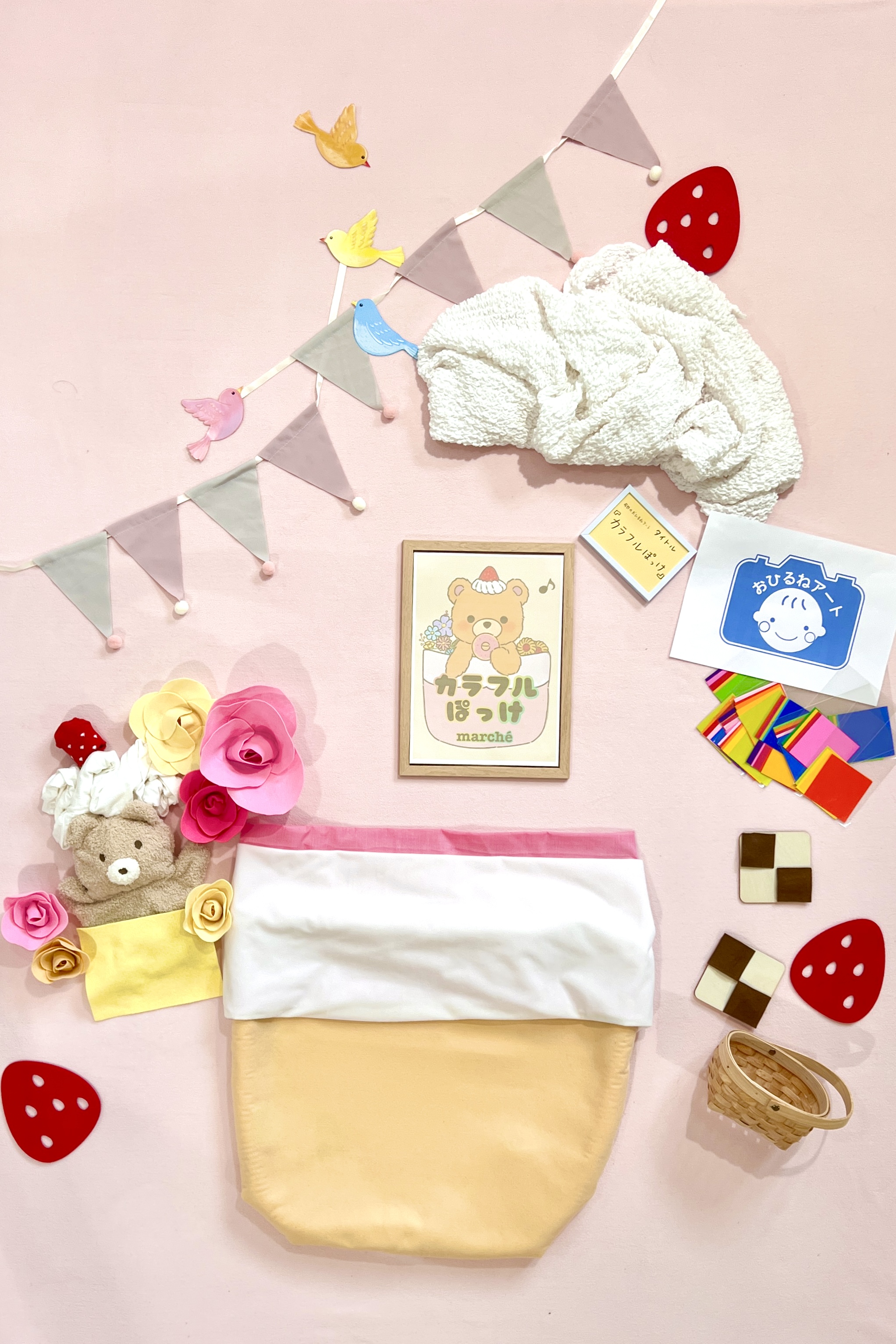 2025年4月20日に東広島市黒瀬・黒瀬生涯学習センターで行われた「カラフルぽっけマルシェvlo.2」におひるねアートの撮影体験ブース 出店しました!