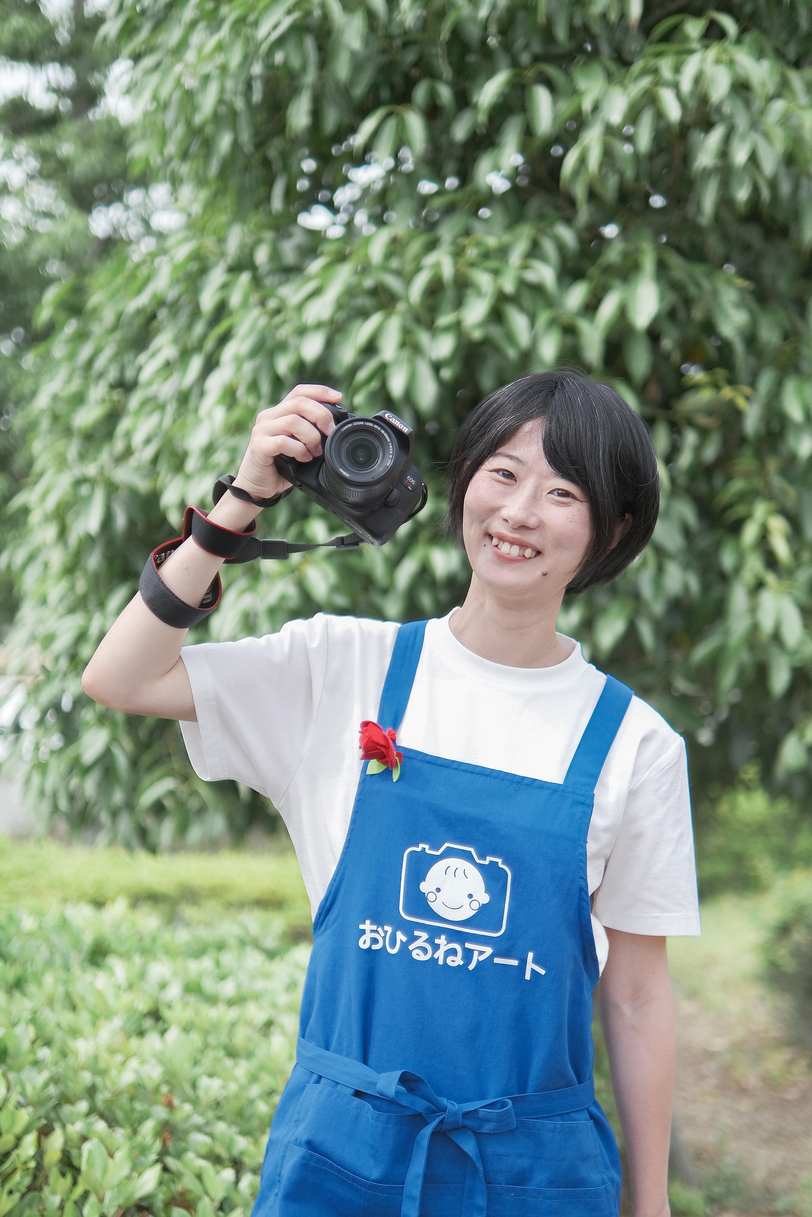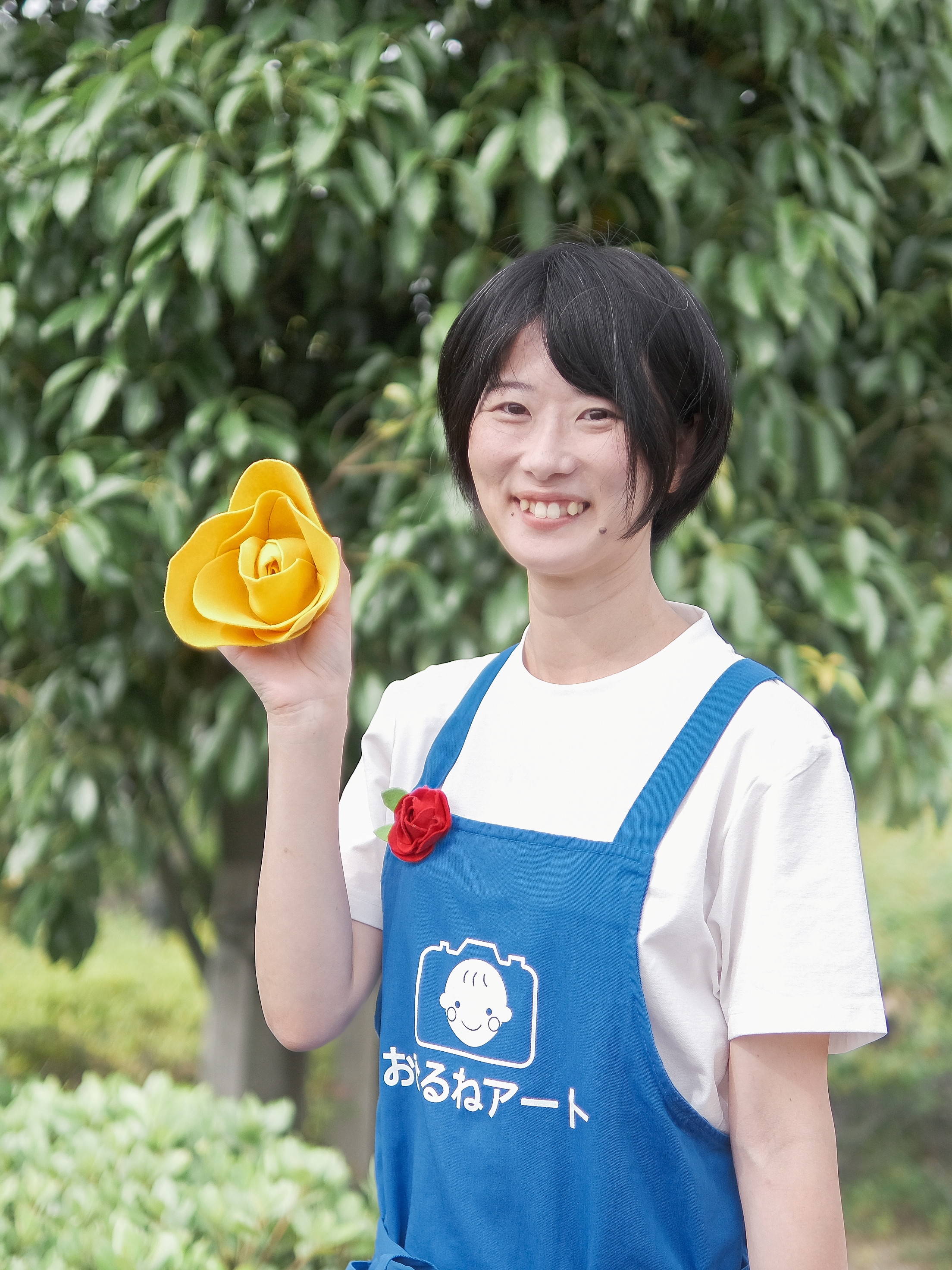 おひるねアート認定講師としての「青エプロン」姿で